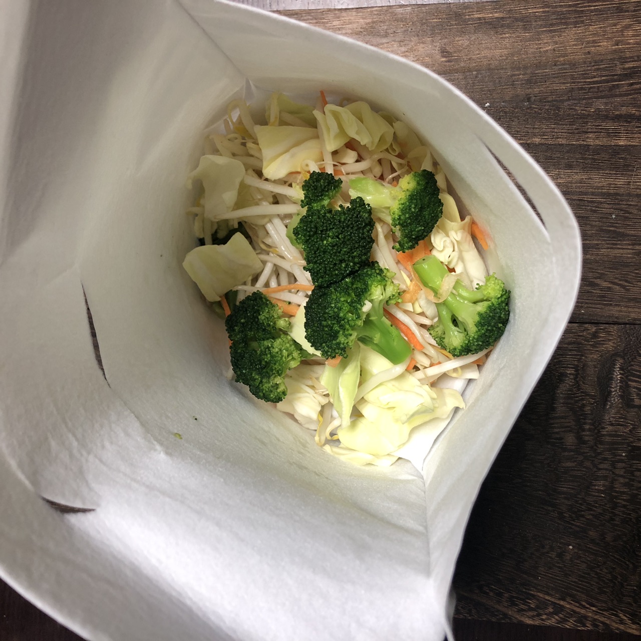 そのままレンジに入れて短時間加熱で温野菜完成という
