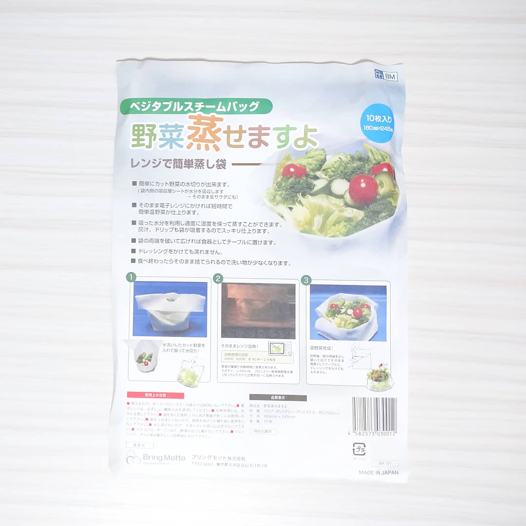 袋いっぱいに野菜をいれましたが、表示されているレンジ2分ではまだ硬かったので更に5分追加でチンしちゃいました?