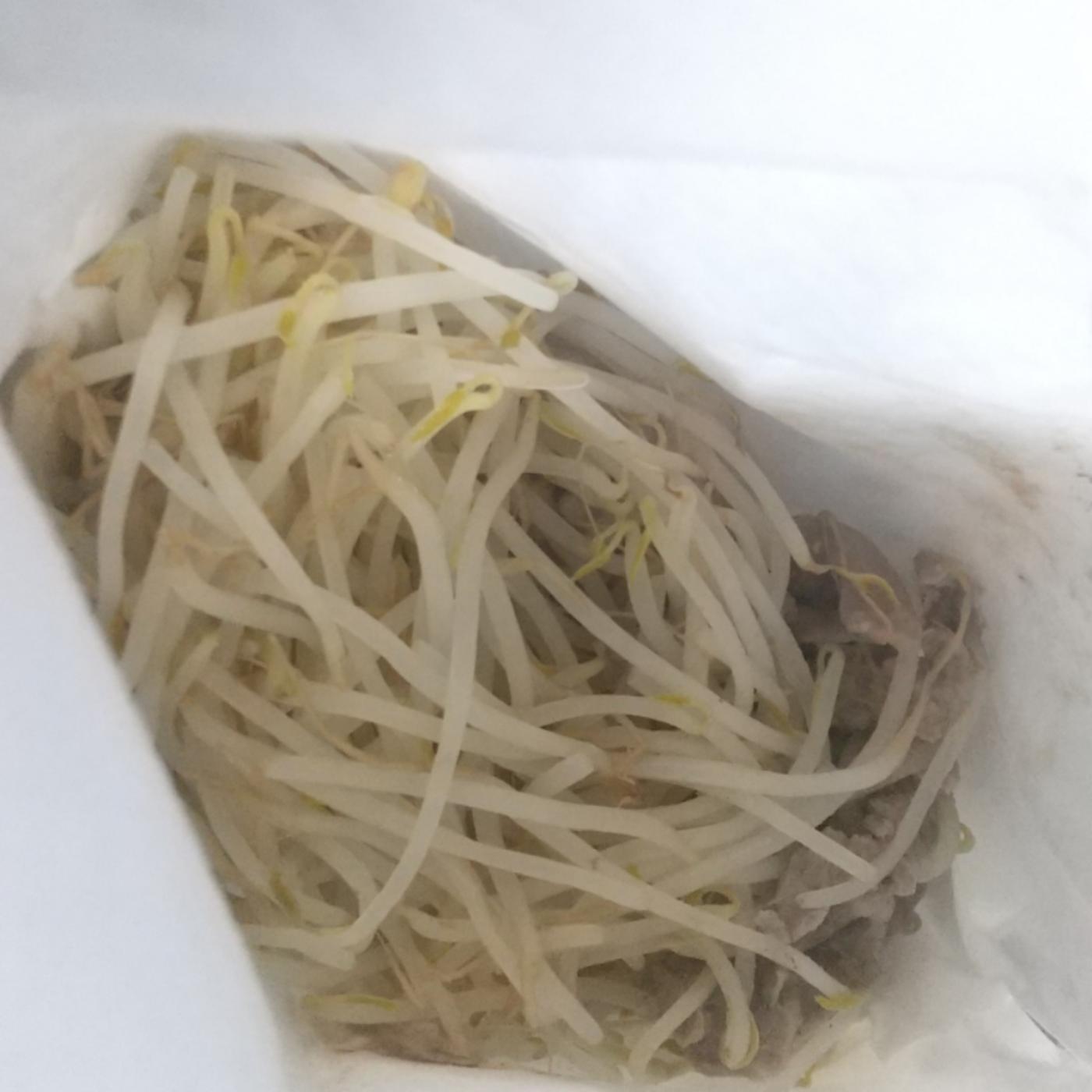 今日のランチは、もやしと豚肉(しゃぶしゃぶ用の薄いお肉)を『野菜蒸せますよ』に入れてレンジでチン!