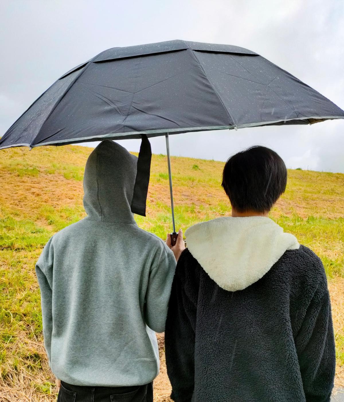 折りたたみではない普通の傘よりも大きくて、これはネーミング通り "あなたと周りを守る" だなと実感。