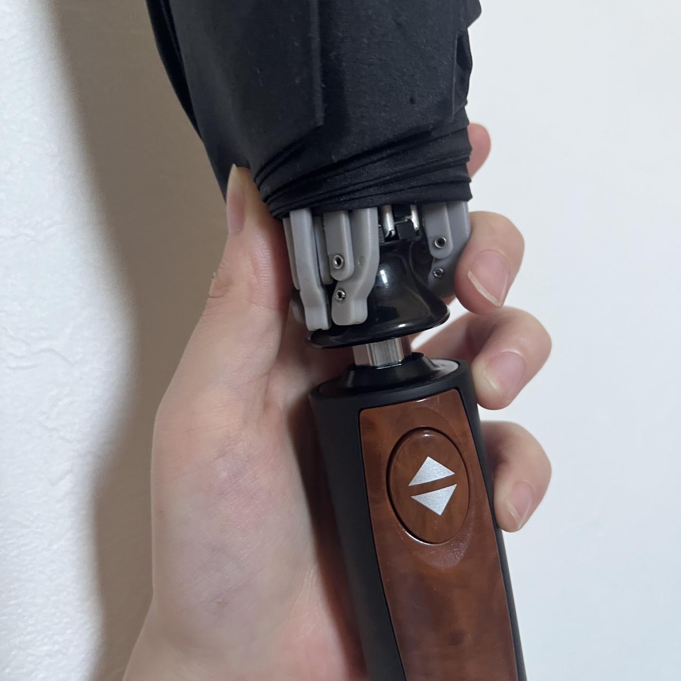 なんといっても、片手で開閉できるボタンがあり、片手が塞がっていても傘を開けたり閉めたりできる点がとても便利でよかったです!紐が付いているので、ベビーカーのフックにかけて置けるのもとても便利でした!