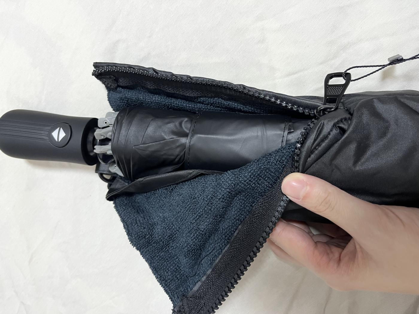 ケースがタオル生地だから、濡れた傘をそのままバッグに入れても中がびしょびしょにならないのも最高すぎる〜!