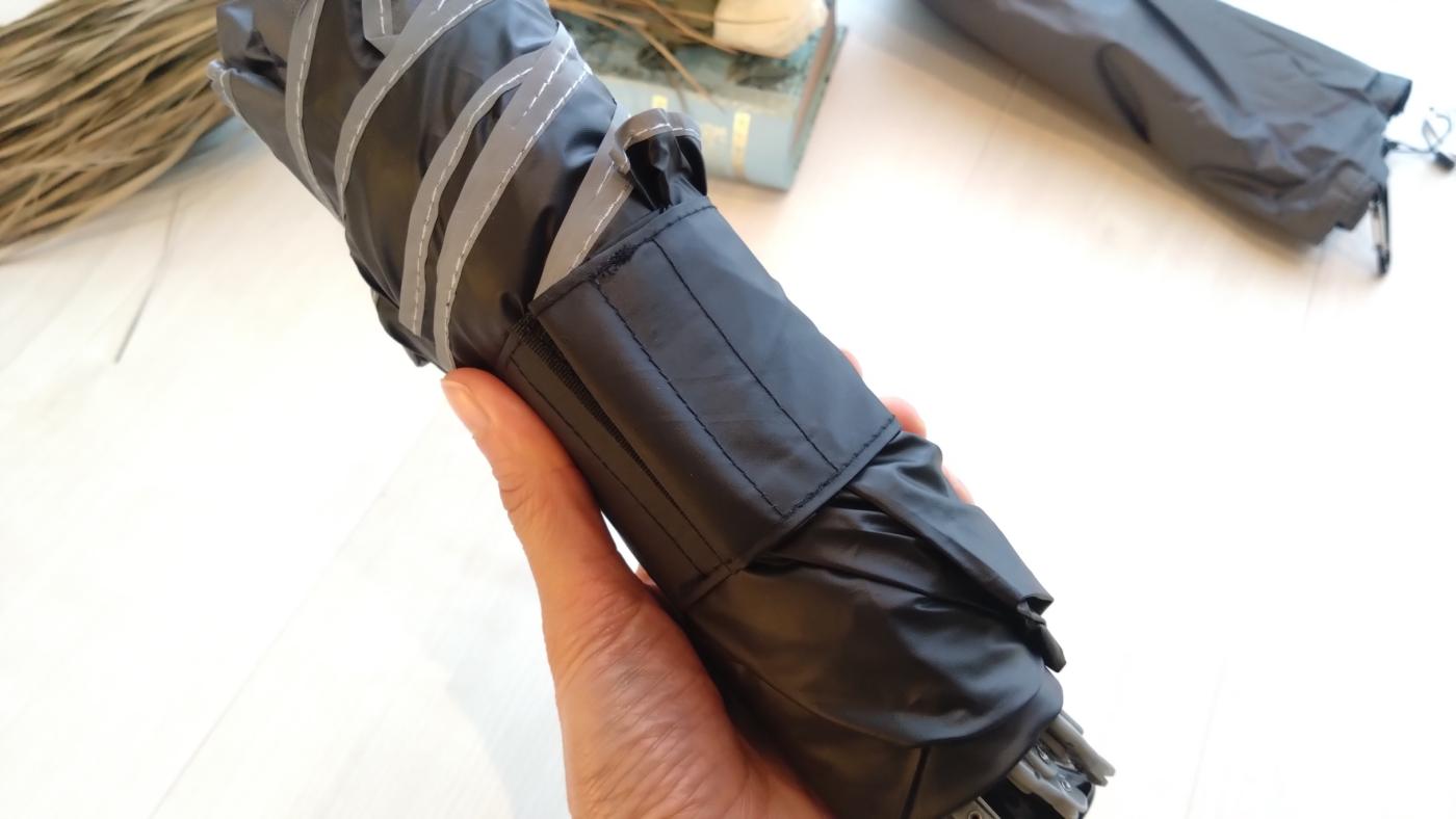 わたしは普段折り畳み傘を持ち歩くのですが、雨の日に使って畳んだ時に手がびしょびしょになって、ケースにもしまいにくい。
