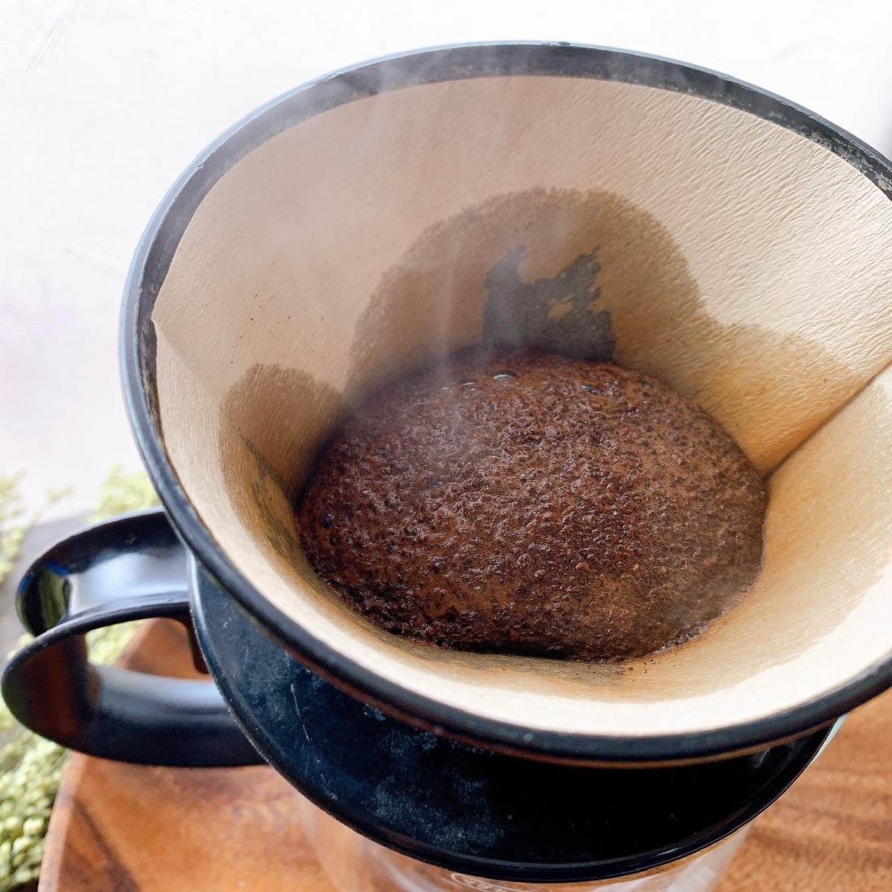 さっそくハンドドリップで淹れてみると、1投目の蒸らしでドーム状にぶわーと膨れました。