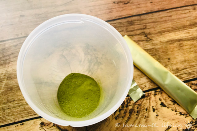 粉の状態だと淡いグリーンでしたが、150mlで作ってみると、濃い緑に。