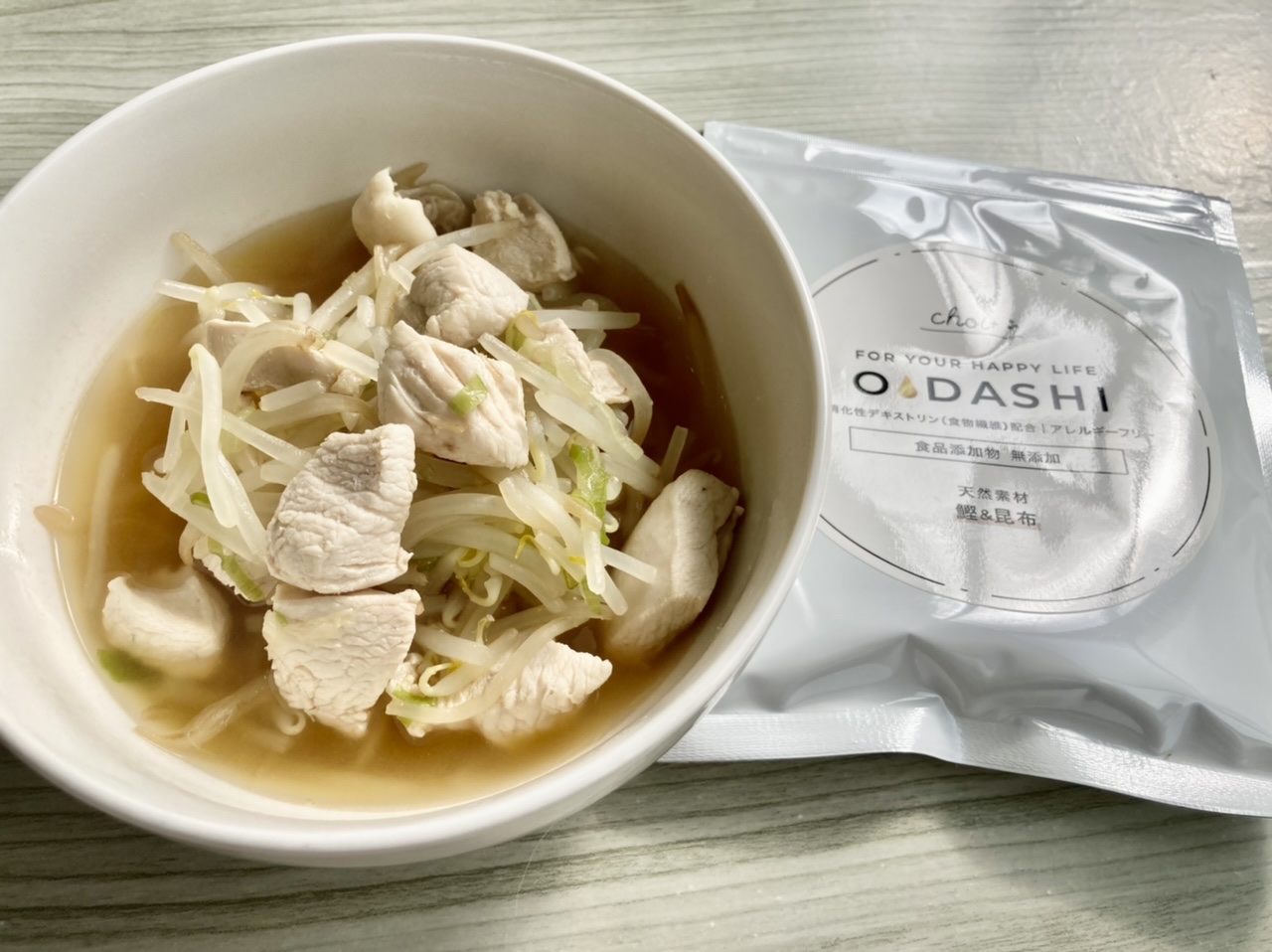 ダイエット中でお昼にもやしを食べているのですが、鶏胸肉とのスープ仕立てに使用してみました💡