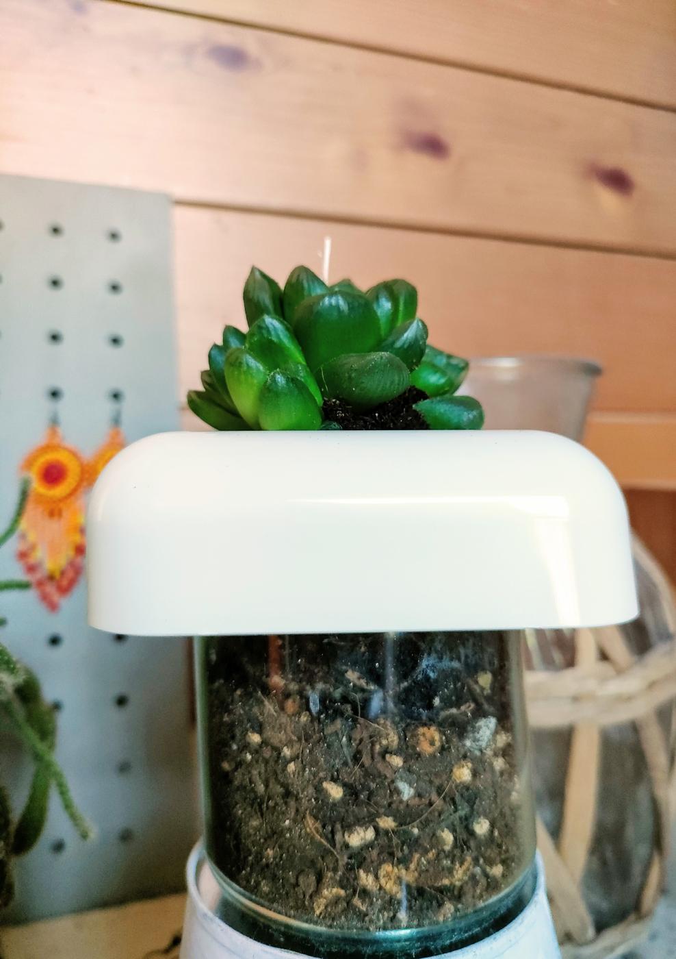 この植木鉢の構造が面白くて、上部を持ち上げると透明のポットが現れ、そこに多肉を植える。それによって水分量を知ることが可能に!!