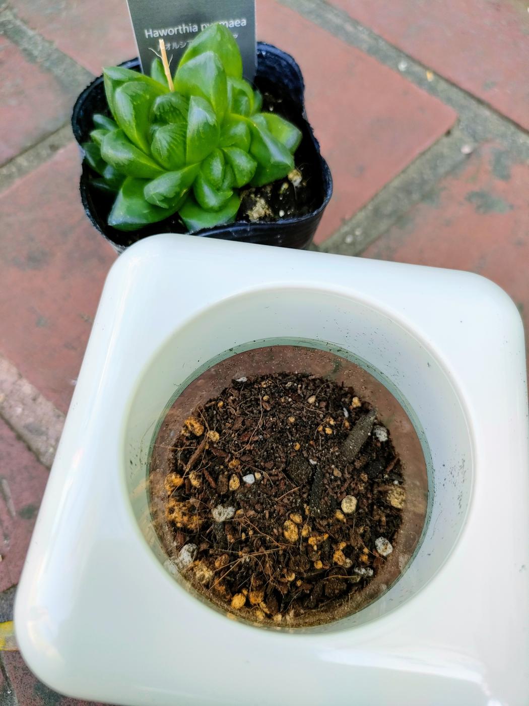 今回、南アフリカに自生するアロエの仲間の多肉植物『ハオルシア ピグマエア』を植えてみました。