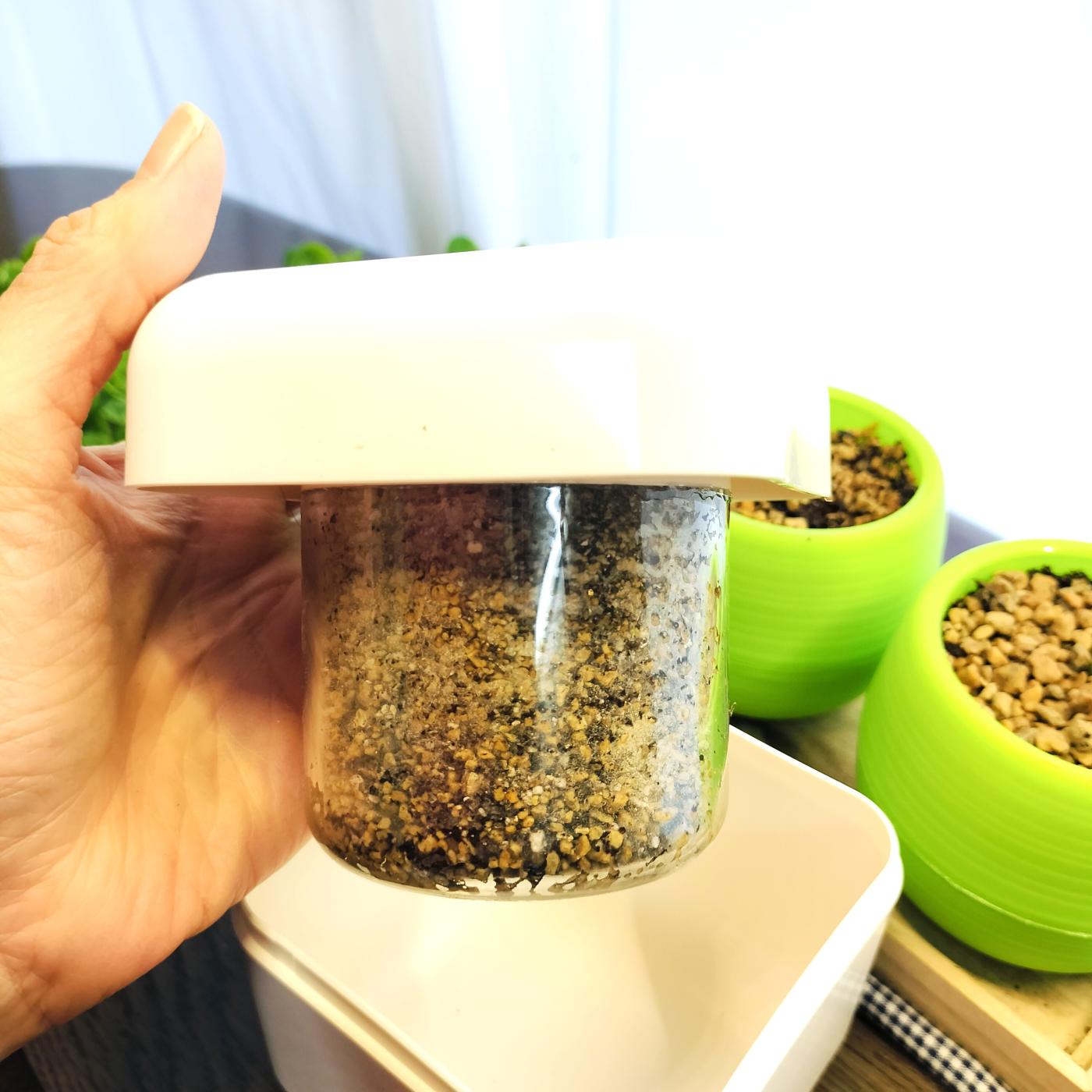 一番の嬉しいポイントは、カバっと上下のカバーを離すと、透明ポットになっていて中身が見える点!