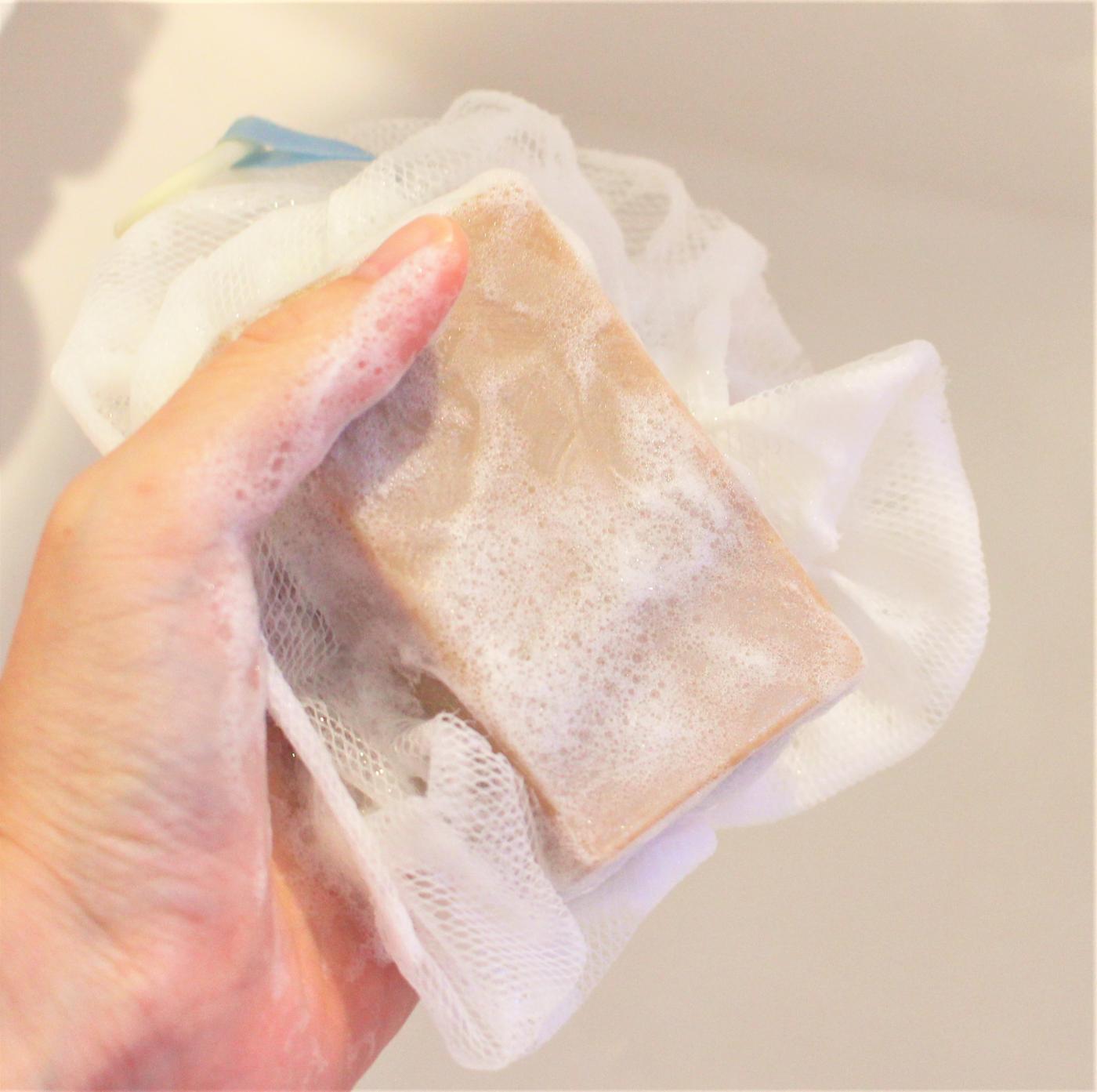 泡立てネットで泡立てていくとふんわりとお肌に優しい泡ができます。