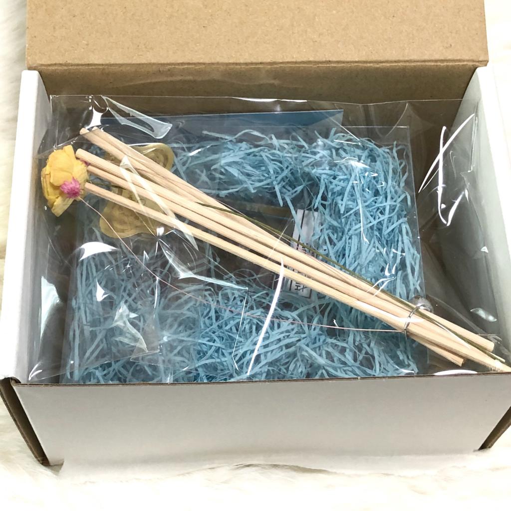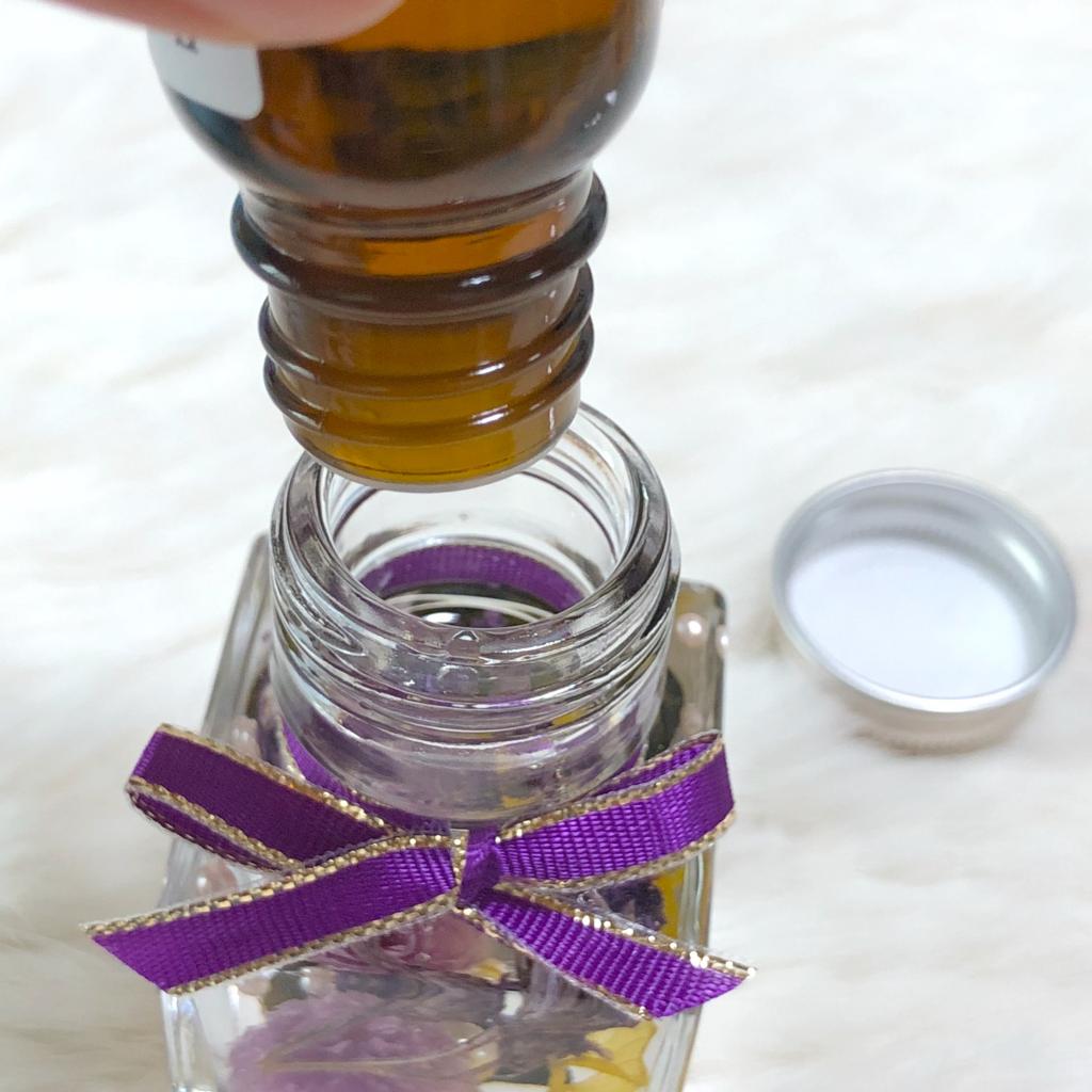 小さなハーバリウムの小瓶と、私の場合は「ジャスミンの香り」のオイルが入っています。