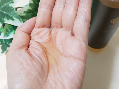 色は薄い黄色で、少しとろみがあるシャンプーです。
