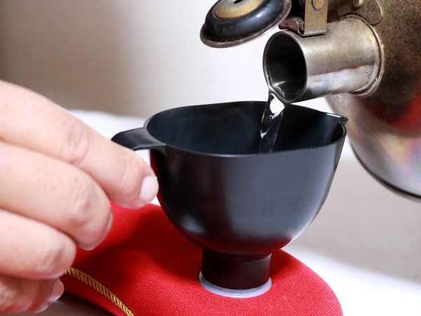 注ぎ終わったらお湯が零れてこないようにキャップを固く締めます。