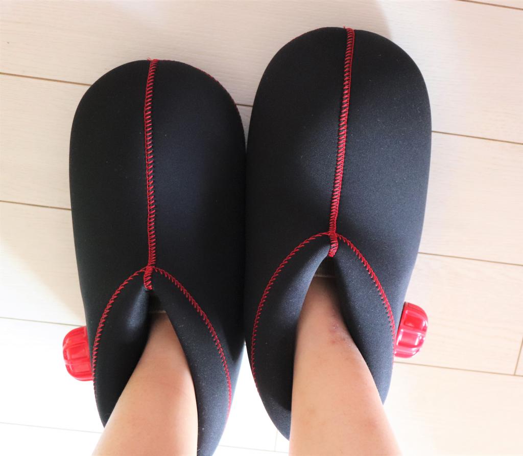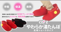 ウェットスーツの素材を使った履くタイプの湯たんぽです。
