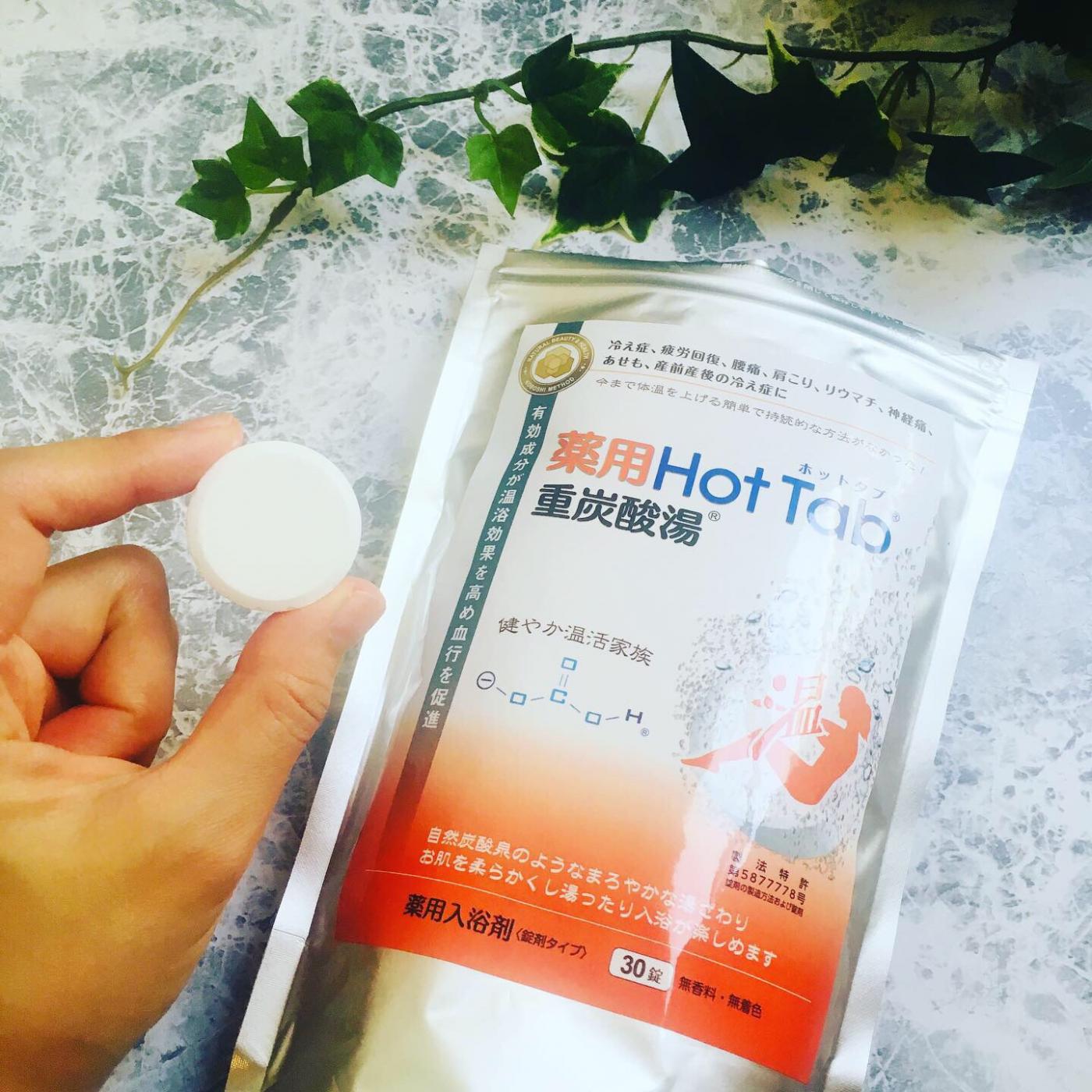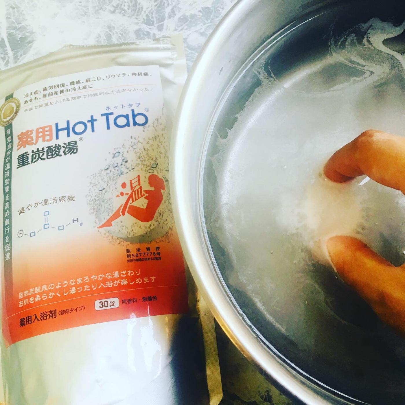 自宅で温泉気分が味わえるのが 薬用HotTab 重炭酸湯 重炭酸温浴法 ぬるめのお湯に3〜4錠のタブ...