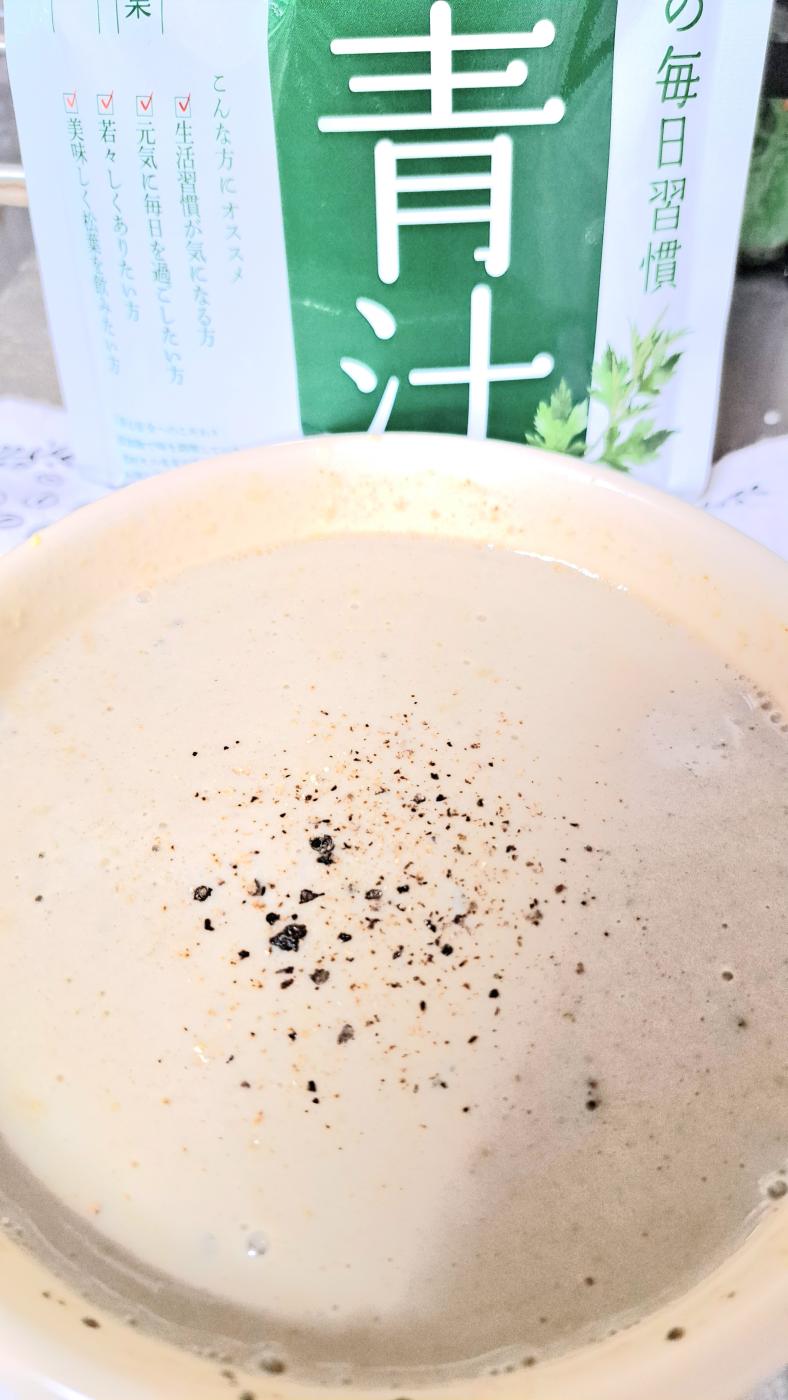 そこに松葉青汁を小さじ1杯を入れよく混ぜ、温めて完成💡
