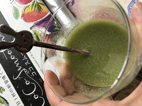 緑のパウダーなのでこれだけ見ると、苦そうなイメージになるかも知れませんが、香りの効果ってすごいですね!