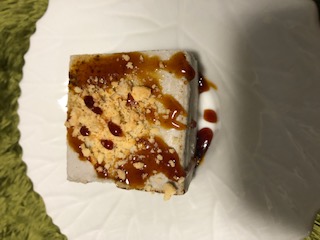 付属のキャラメルソースと生姜クランチをかけて、甘さとザグザグ食感をプラスして美味しく頂きました。