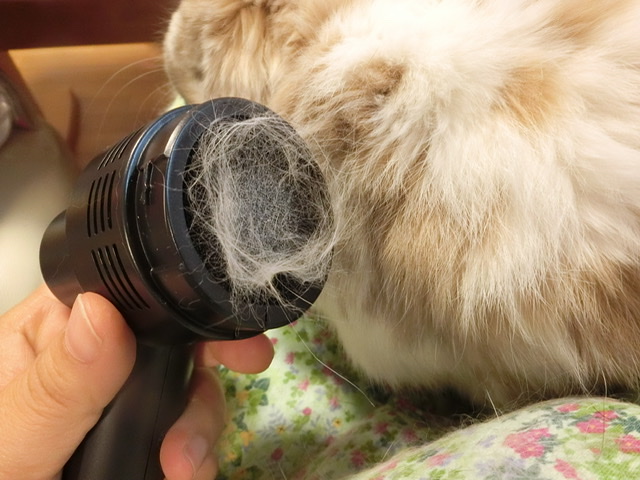 届くまで車の中で使おうか?ペットの小屋の掃除に使おうかといろいろ考えていましたが、ペットのうさぎがちょうど換毛で毛が抜けまくりなのでブラッシングをした後に体の毛が取れるかとクリーナーで吸い取ってみました。