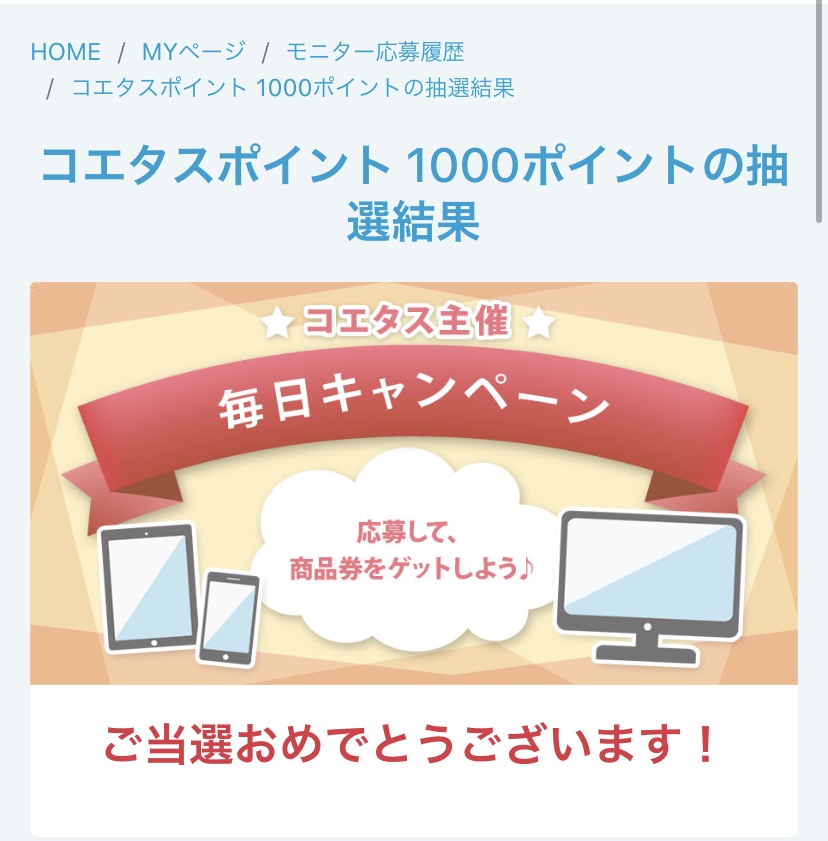 モニター商品の当選はこれからだけど、たくさん応募したから何か当たらないか抽選結果を楽しみに頑張れる!