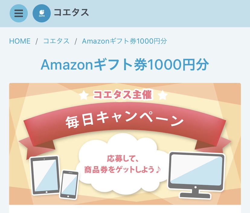 今日の抽選はAmazonポイント1000ポイント!もちろん応募済。
