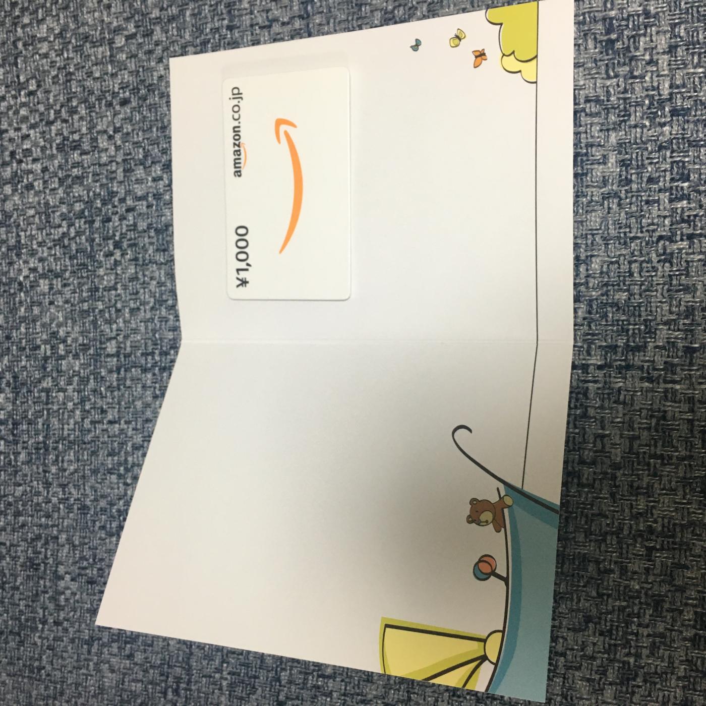 今回がAmazonギフト券を使用したのは初めてでした。写真の通りプレゼント用のメッセージカードにギフト券が付いており、メッセージを書いて封筒に入れてプレゼントできるようです。