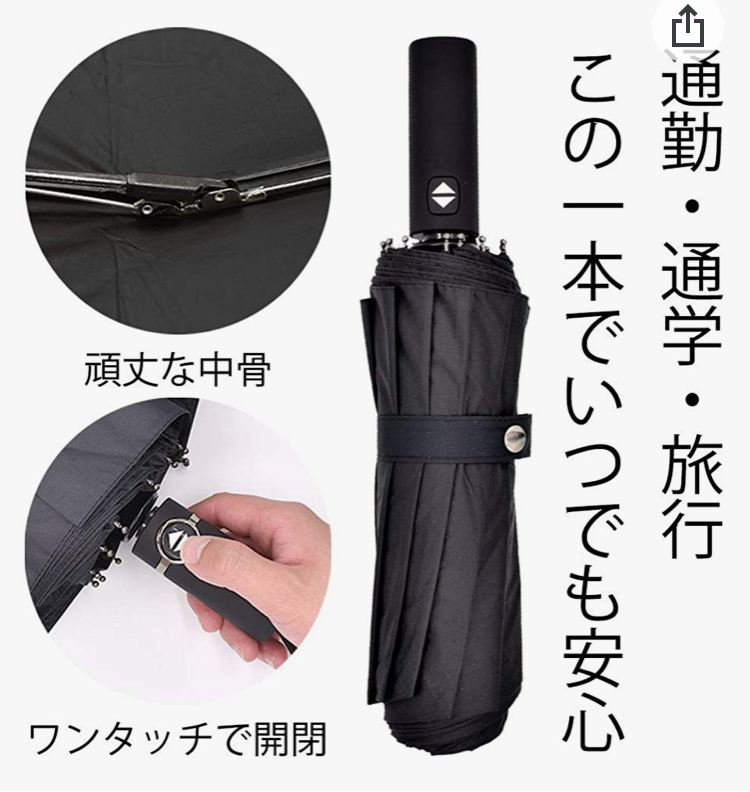 12本の骨で強風や暴風雨、台風の日でも安心して使えるそう☂️