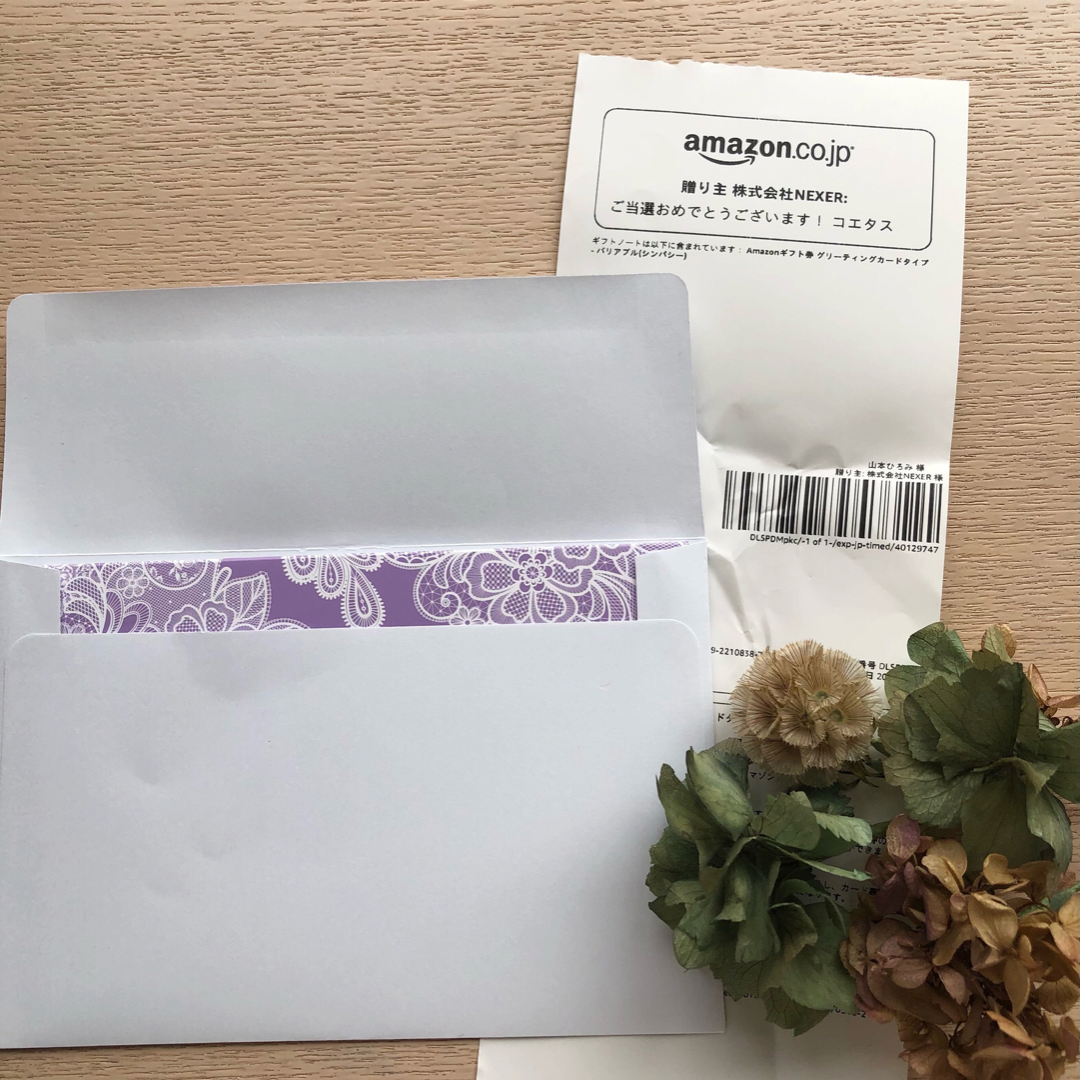 モニターを楽しくさせていただいている日々の感謝や、報告を込めてメッセージしていた所、Amazonギフト券も当てて頂きました。