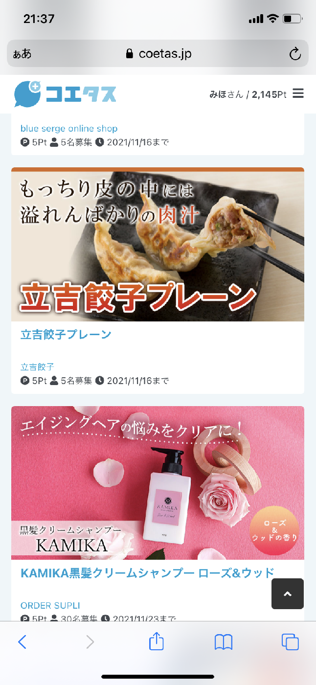 コエタスを登録して初めて応募させて頂きましたがまさかの当選、、! しかも1000ポイントの高額当選は驚...