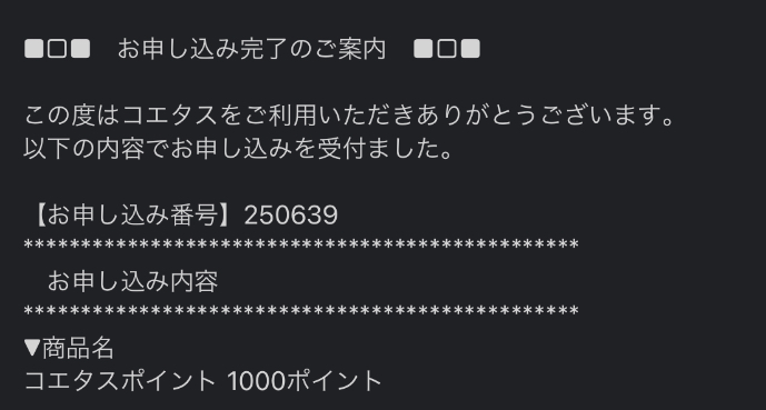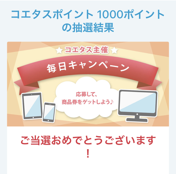 【コエタスポイント1000ポイント】またまた当選いたしました!これで3回目です!