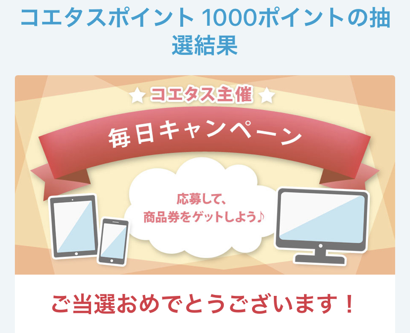 またまたのコエタス1000ポイント当選