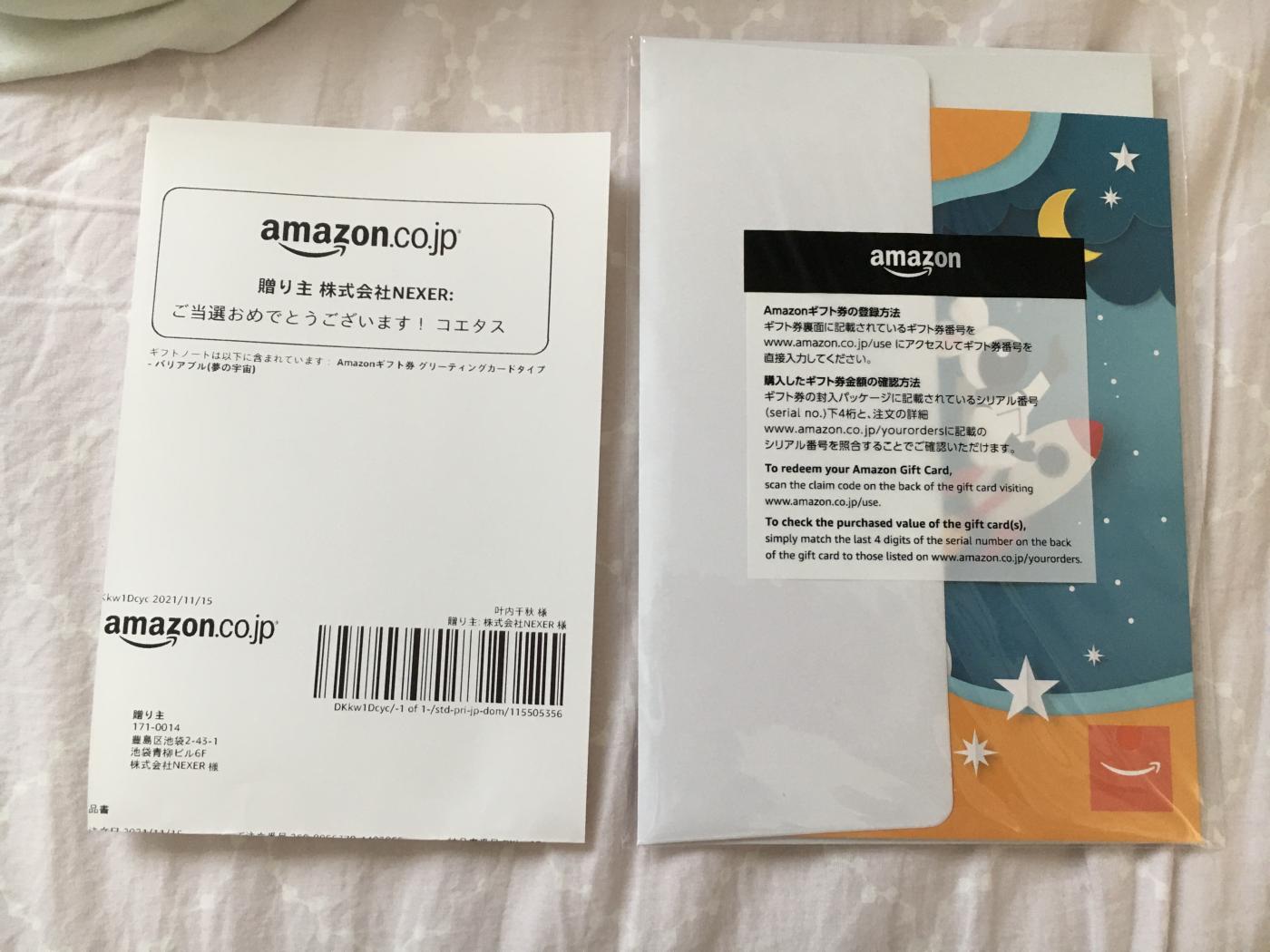 でもAmazonギフトは夢じゃないので、有難くいただきました。