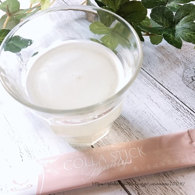 ピンク色のかわいい個包装で持ち運びに便利。手で切ることもできます。真っ白なサラサラの粉で匂いは気になりません。少し舐めてみると、粉状コラーゲンを試したことがある方ならわかると思いますが、同じような味です。おいしくはありません。普段ちょっと苦手な味のものは先に粉を全部口に入れて、その後水を流し込むのですが、飲み物に混ぜないとむせるらしいので、スポーツ系ドリンクに混ぜてみました。冷たい飲み物に混ぜる時は、よーくかき混ぜて一気に飲んだ方がいいです。しばらくすると、下に沈んできて残りが濃くなります。サーッと溶けてザラザラした感じはないのですが、コラーゲンの成分が重くて下に来る感じです。ちゃんと混ざっていれば飲みにくさはな いです。この後に暖かいカフェオレに混ぜてみたのですが、そちらのほうがより飲みやすいかもしれません。