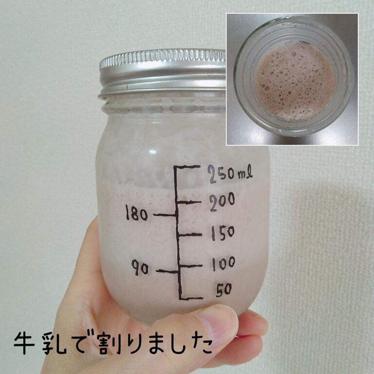 粉末のプロテイン独特の味も多少感じますが、牛乳で割るとそれが薄れるので、濃厚ですごく美味しいココアです。お腹いっぱいになります。
