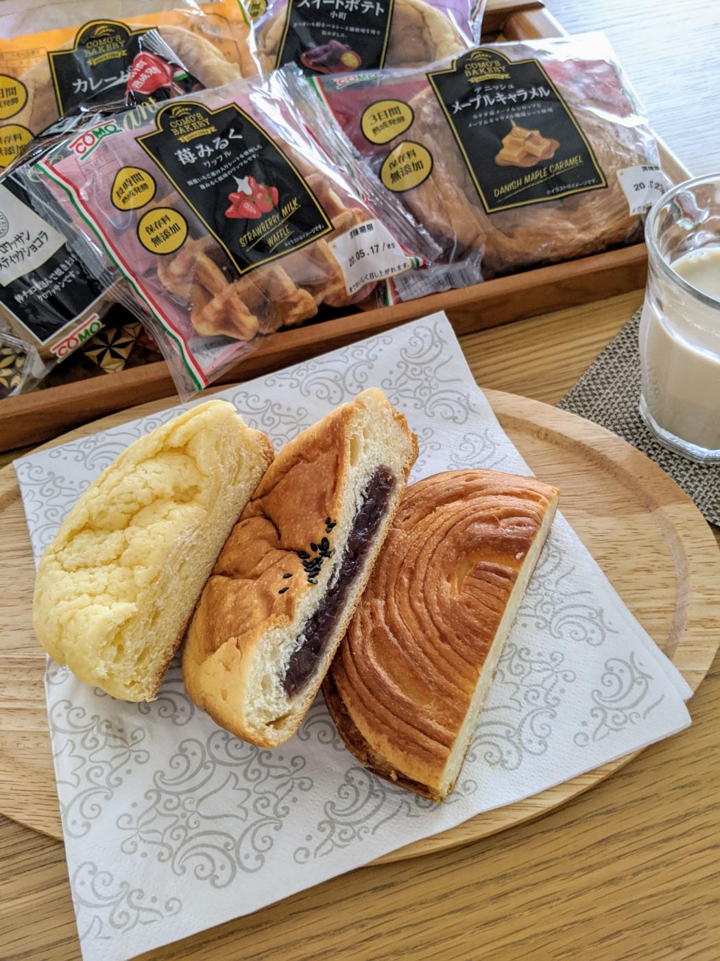 懐かしいフワフワのデニッシュパン、小倉あん入り、メロンパンを食べ比べ。