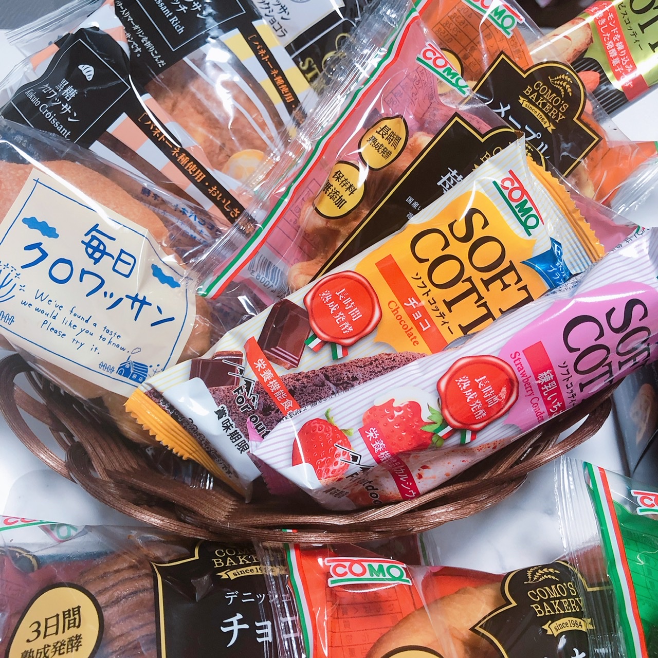 COMOのパンの食べ比べセットを頂きました。 可愛いイラストの大きな箱の中には、20種類以上のパンが...