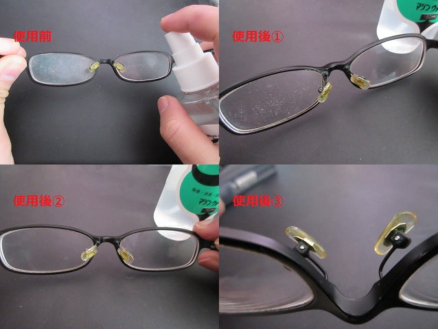 その結果がこちら(写真2枚目左下)。左右のレンズともに大変綺麗になりました♬これなら視界がクリアになりますね!写真2枚目右下は鼻パッドの箇所を拡大したものですが、使用前は金具の間に汚れが溜まっていたり、緑青(ろくしょう)が出ていたりで困ったものですが、それらも綺麗に除去することができました。個人的に大満足です。