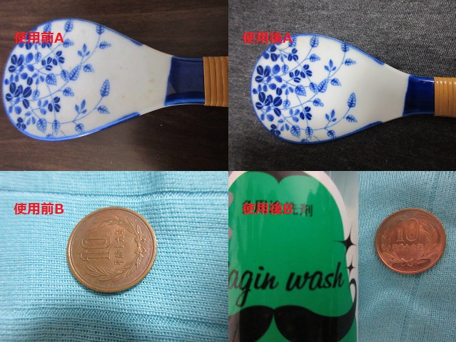 最後に、10円玉(写真3枚目左下)です。小銭は色々な方が触れる物である関係上、大変汚れやすいのでこれは実験にうってつけなのではないでしょうか。