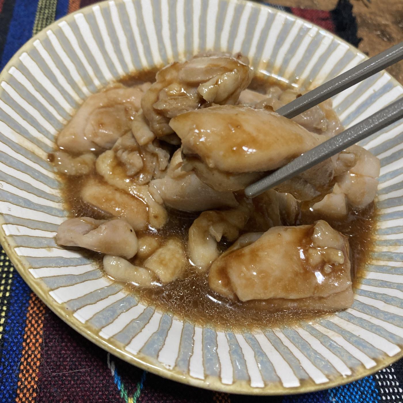 まず最初に印象的だったのは、香りの良さですね。袋をあけるとすぐに、酢パイスと香ばしいチキンの匂いがふわっと立ち上りました。これは期待感を一気に高めてくれますね。味付けはかなりしっかりめでごはんがすすみます。塩気だけに頼らずに、甘みや酸味をはじめとしてほのかな辛さがバランスよくまとまっていて止まらない!