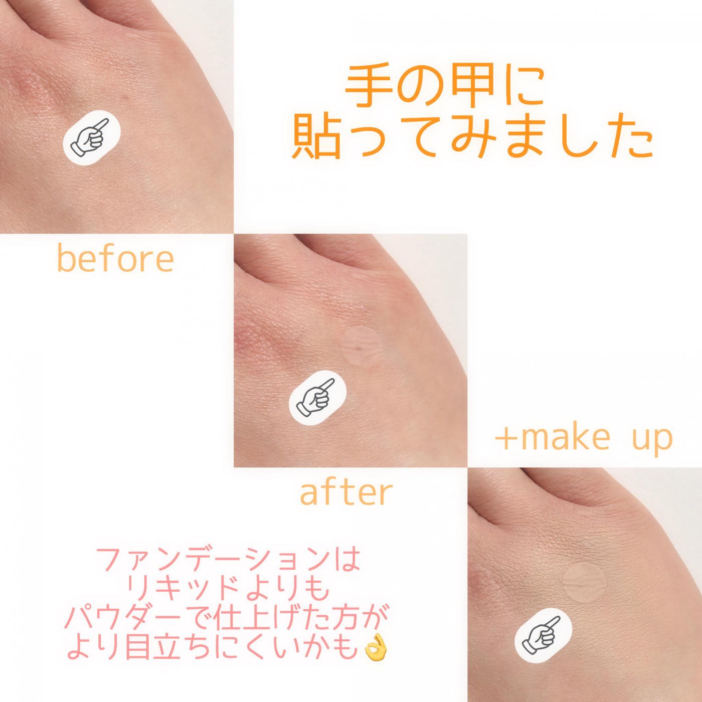 こちらの商品は簡単にシミ・ニキビが隠すことができます?手の甲のほくろのようなシミに貼ってみました?‍♀️わたしはリキッドファンデーションでメイクをしてみたのですが、パウダーファンデーションの方がより目立ちにくいかもしれません?