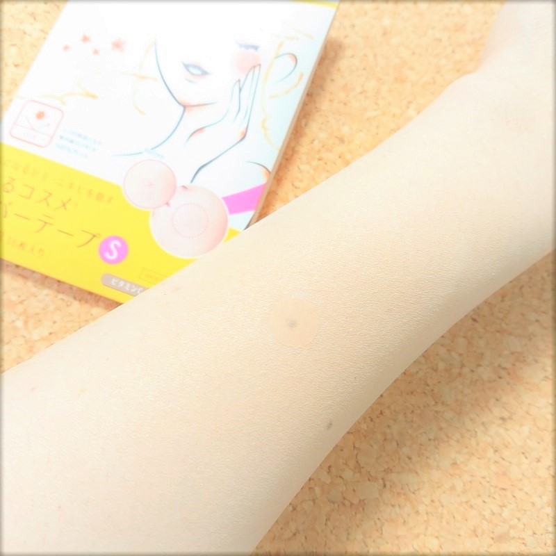 ファンデーションを塗ったら、テープの円形が少し目立つようになってしまいましたが、