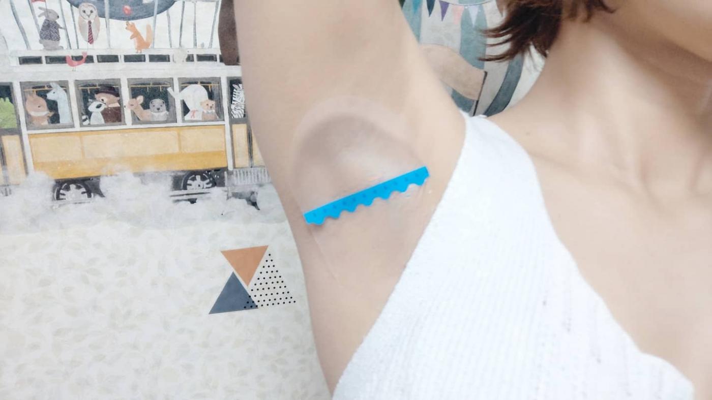 医療テープと医療用アクリルジェル粘着剤なので お肌に優しく 薄い膜のようなシールなので ワキにフィットして