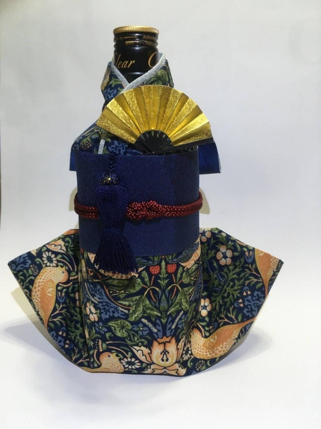 カーテンココ 着物ボトルカバー いちご泥棒-ブルー