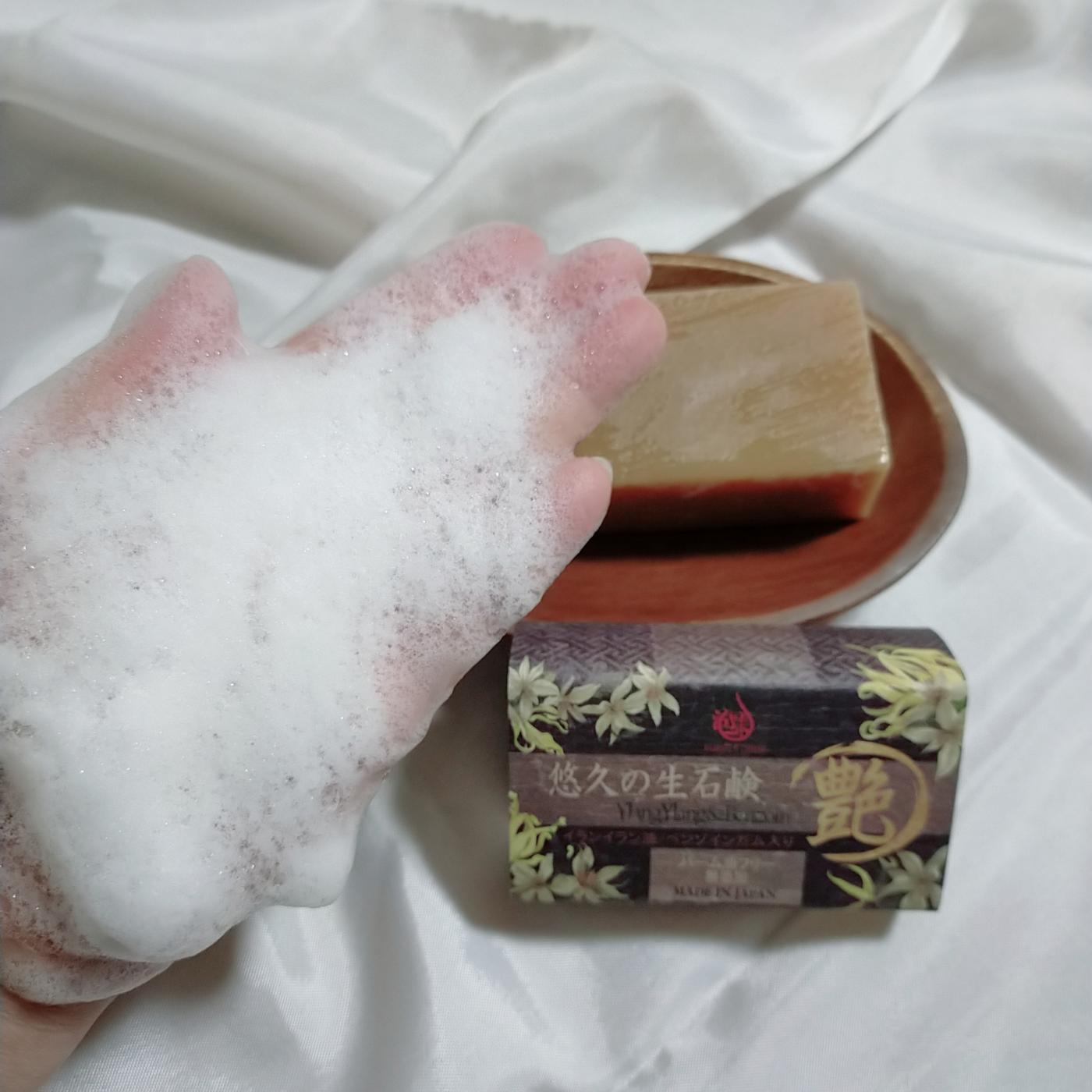 『悠久の生石鹸 艶』は、お肌に良い豪華なオイルを贅沢に調合して出来た