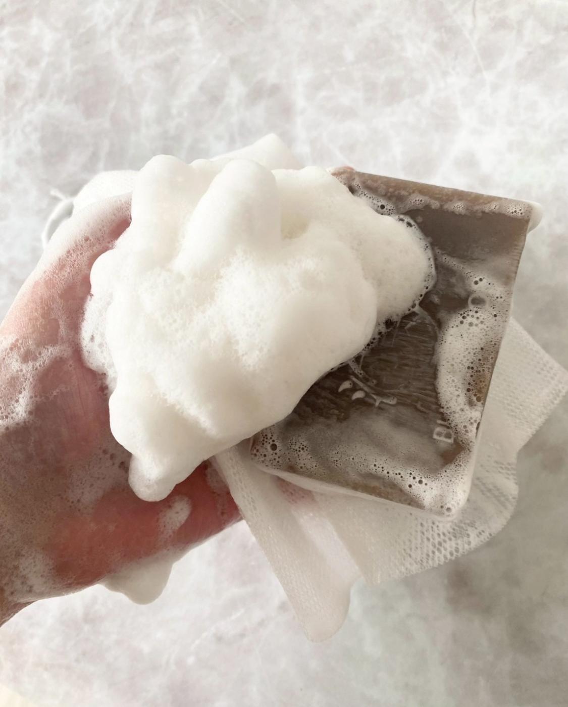 泡立てネットを使用するとふわふわのやわらかな泡が立ちます。
