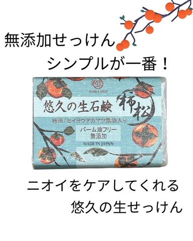 柿渋と赤松精油を配合したナチュラル石鹸【悠久の生石鹸 柿松】パームオイル不使用!
