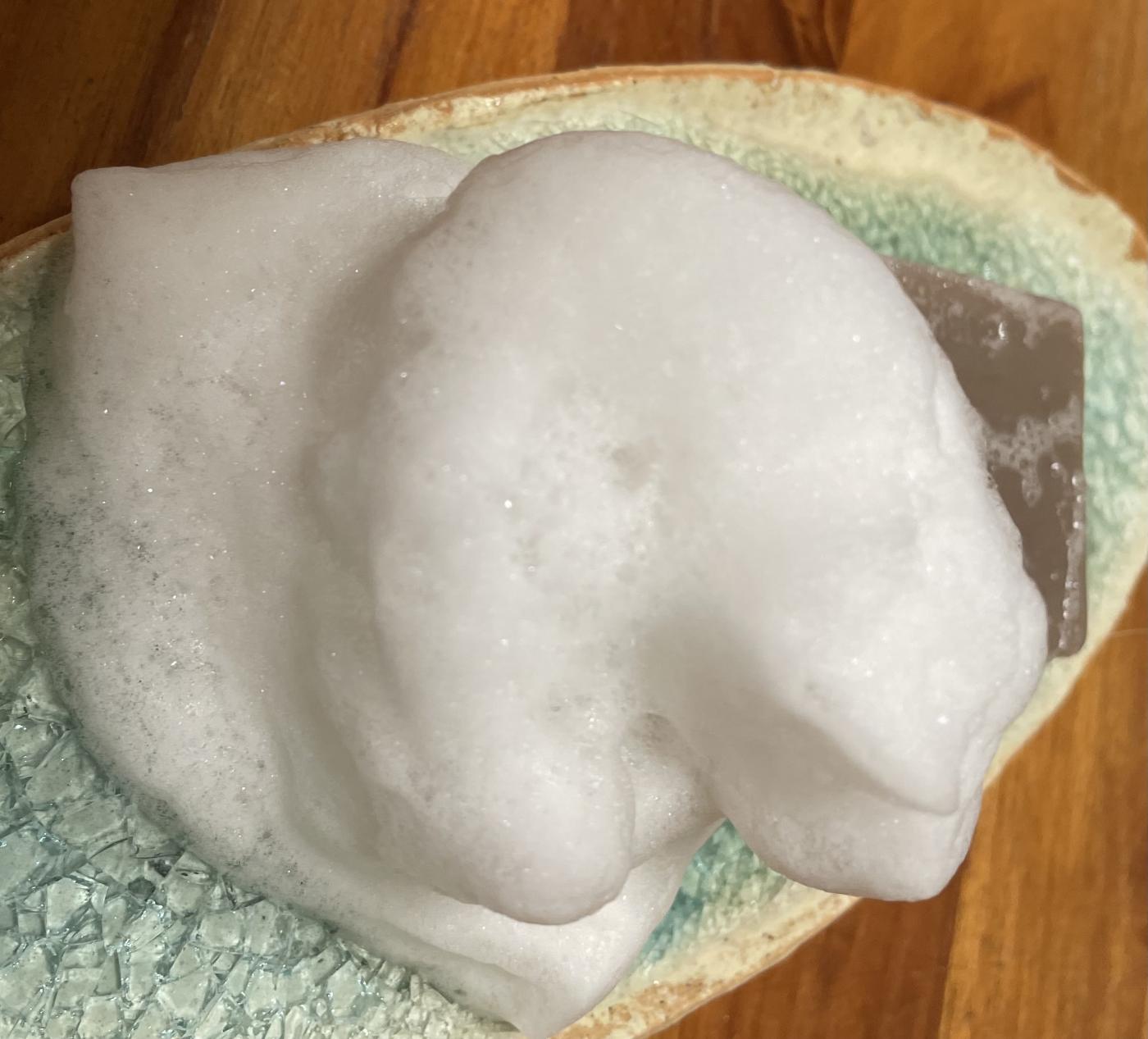 固めの石鹸で、バスルームに置いておいても、溶けて小さくなる事もなく、使いやすい石鹸だなぁ〜と感じました♪