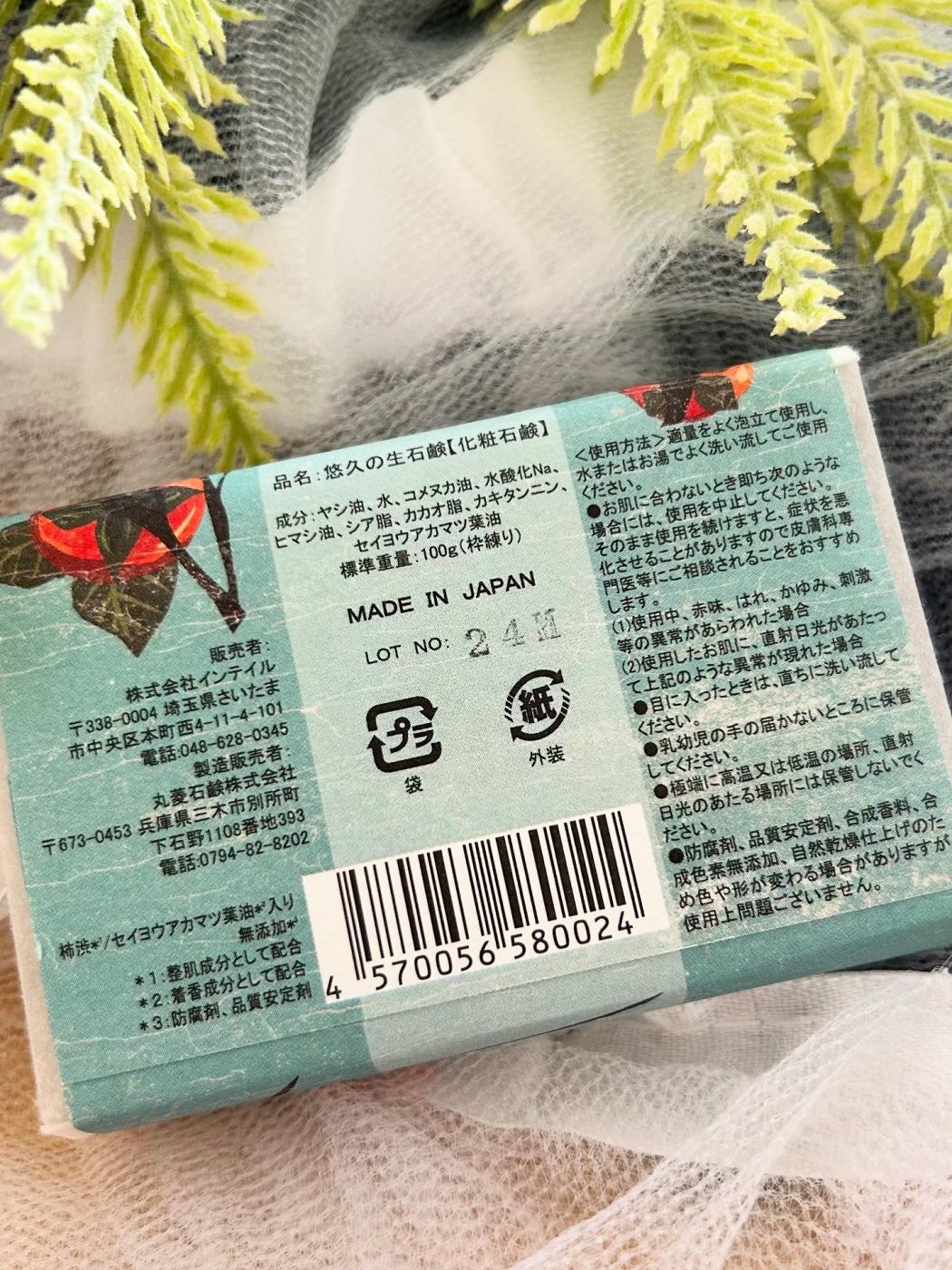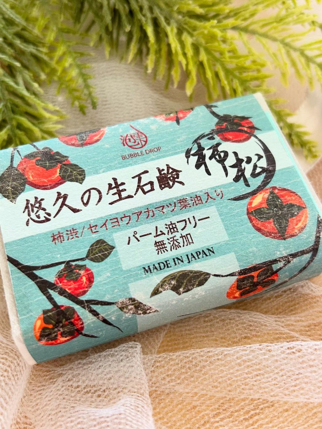 柿渋と赤松精油を配合したナチュラル石鹸【悠久の生石鹸 柿松】パームオイル不使用!