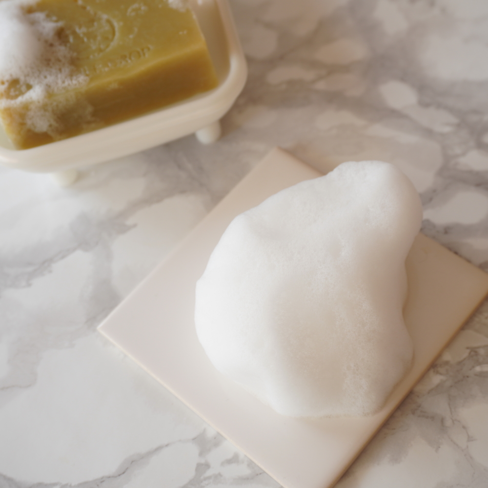 使い方ですが、泡立てネットを使って泡立てるときめの細かい泡ができますよ。