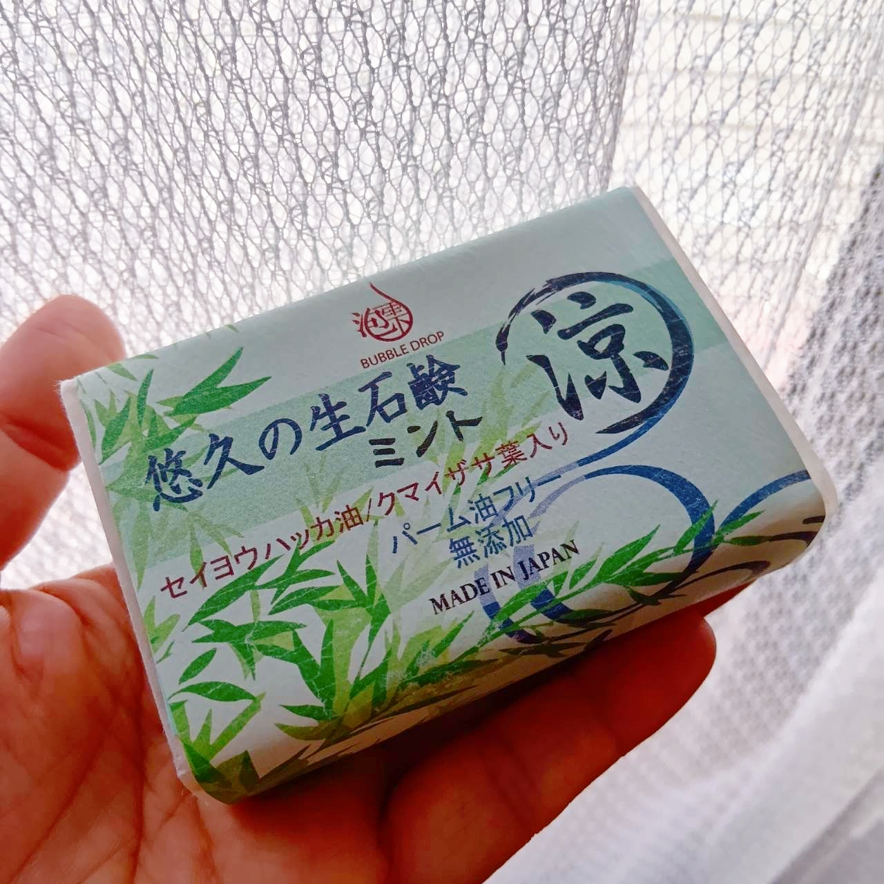 暑い日が続いているから、悠久の生石鹸 ミント 涼を使ってみたよ🌱